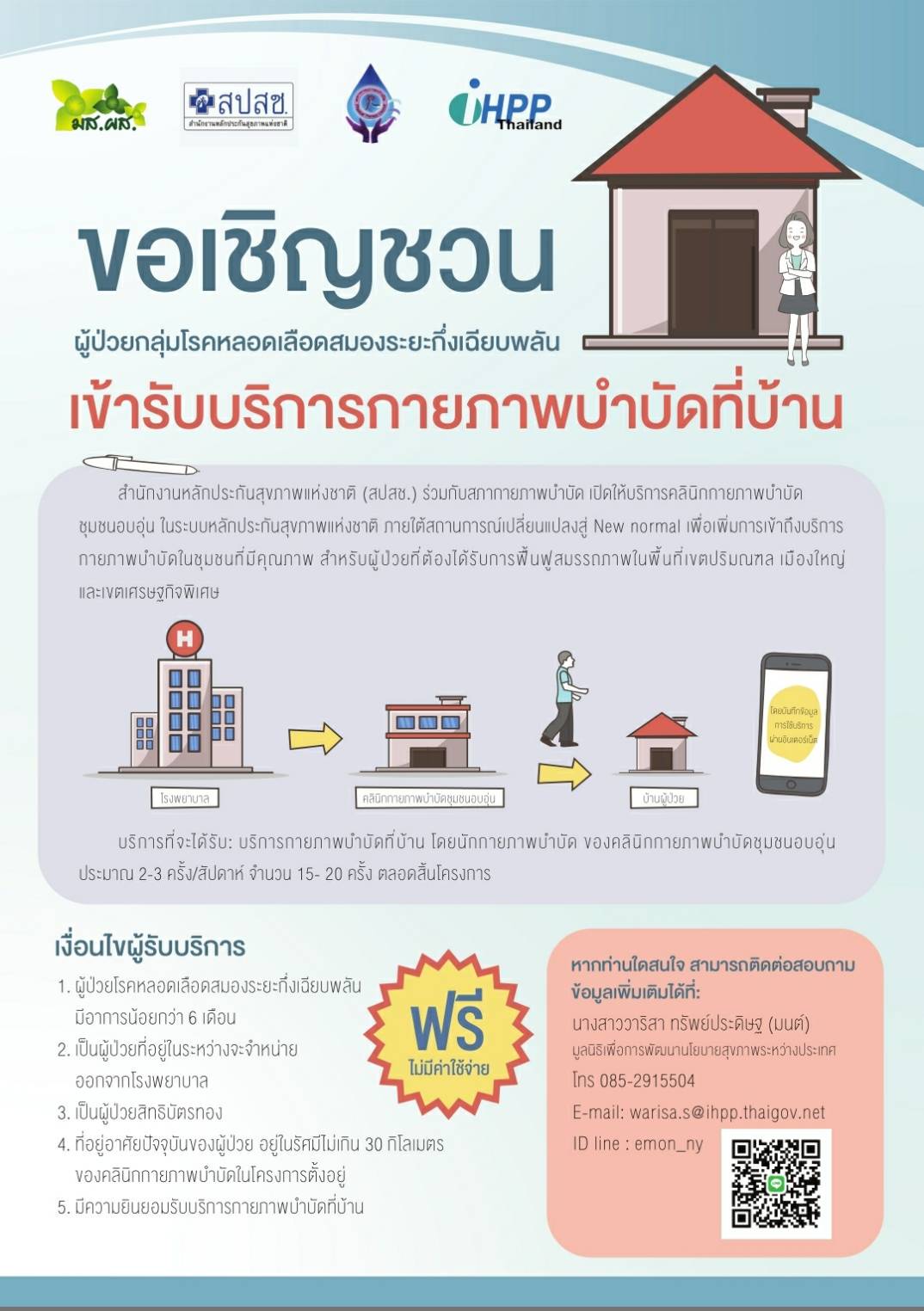 เพื่อนๆทราบไหมคะว่า สามารถเข้ารับบริการกายภาพบำบัดที่บ้านได้ สำหรับผู้ป่วยกลุ่มโรคหลอดเลือดสมองระยะกึ่งเฉียบพลัน ถ้าสนใจสามารถดูรายละเอียดได้นะคะ